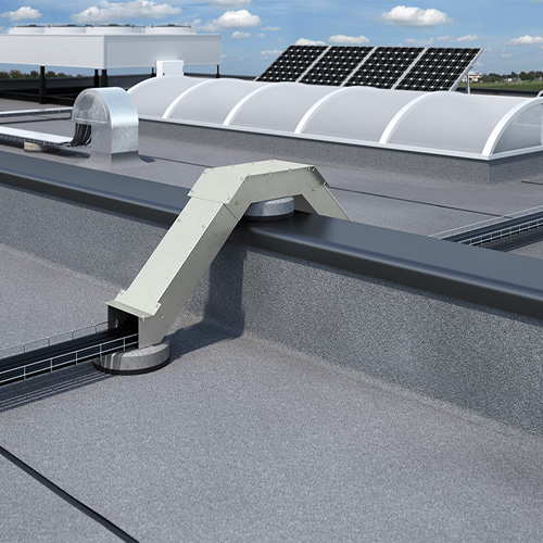 Combustible cables may not be run over firewalls without fire protection measures. This is because, in the event of fire, they would spread the fire to the neighbouring roof area. However, individual cases are possible, in which the routing of combustible cables over firewalls cannot be avoided. In these cases, the cables must always be routed in a protected manner. OBO can offer two different solutions for this: