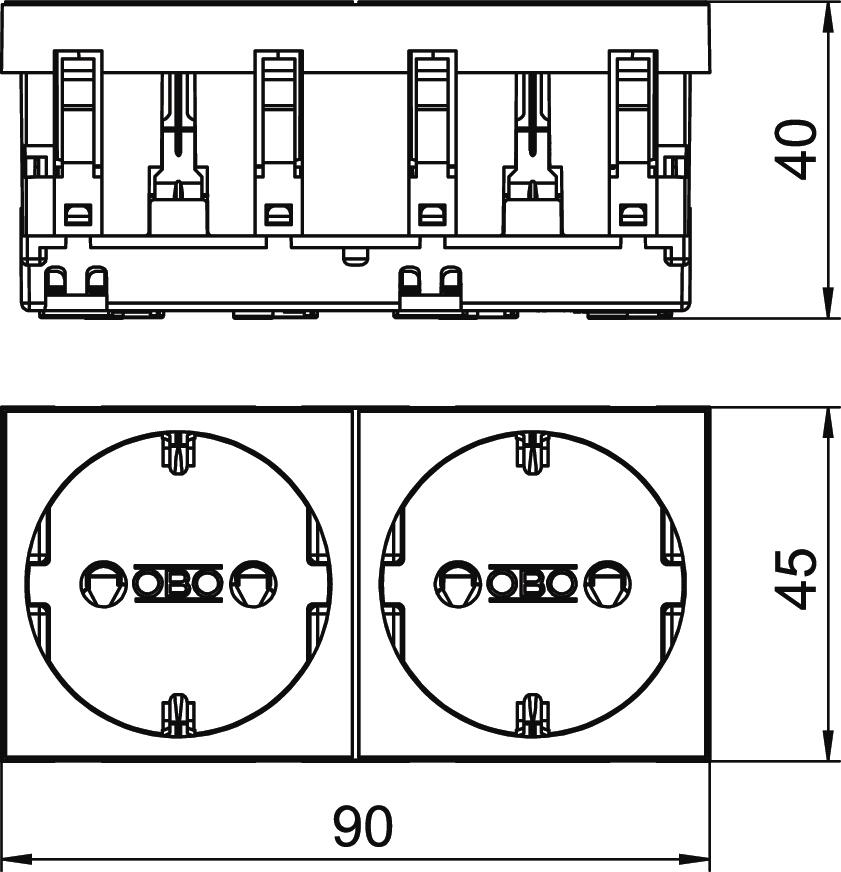 Product descriptionPower socket, double 0°, with increased touch protection with screwless terminals, 2-pin, 16 A, 250 V~, with connection terminals to IEC 60884-1.