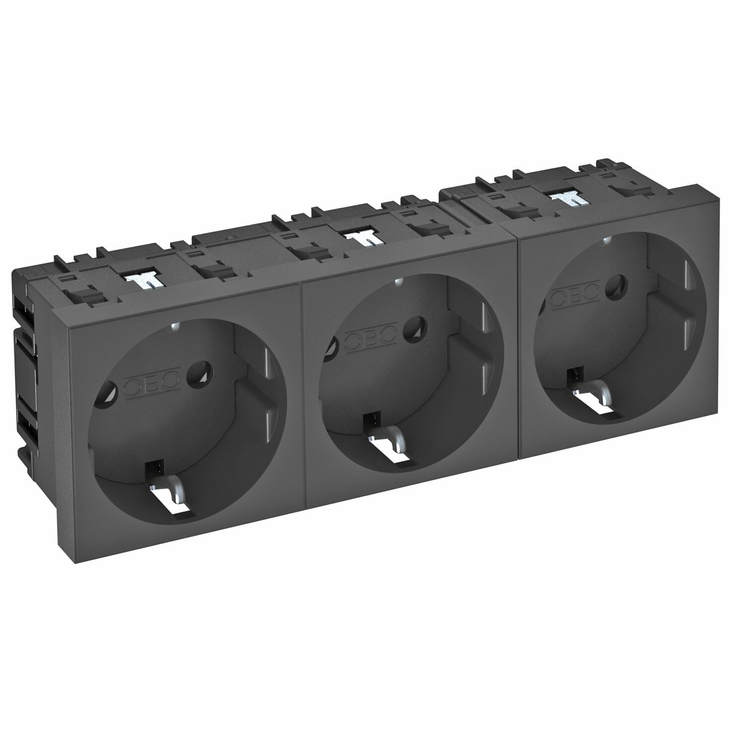 Product descriptionPower socket, triple 0°, with increased touch protection with screwless terminals, 2-pin, 16 A, 250 V~, with connection terminals to IEC 60884-1.