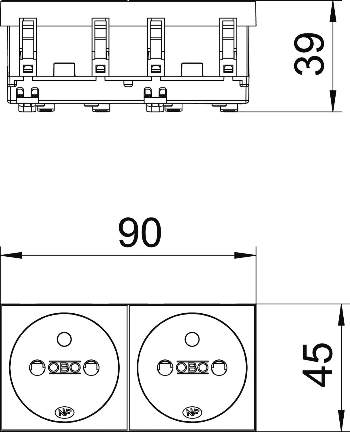 Approvals VDE Closable no CO2 Footprint (GWP) Cradle-to-Gate 0,3189 kg CO2e / 1 Piece Coding no Colour Black-grey; RAL 7021 Connection type Screwless terminal Cover Central plate Depth 39 mm Dimension 250V, 10/16A Ejection mechanism no Error current protection no Fastening type Lock For more difficult conditions (according to VDE) no Halogen-free yes Height 45 mm Hinged cover no increased touch protection yes Insulated installation no Labelling panel no Material Polycarbonate Mounting type Device installation duct Nominal current 16 A Nominal voltage 250 V Number of poles 2 Number of units 2 Operating temperature, max. 40 °C Operating temperature, min. -5 °C Printed label/coding Without printing Protection rating Other Rotated central insert no Socket angle 0° Socket version NF Special power supply Without special power supply Surface version Matt Surge protection no Transparent no Version for Double 0° Warning light no Width 90 mm With fine-wire fuse no With functional lighting no With on/off switch no With orientation lighting no - All types