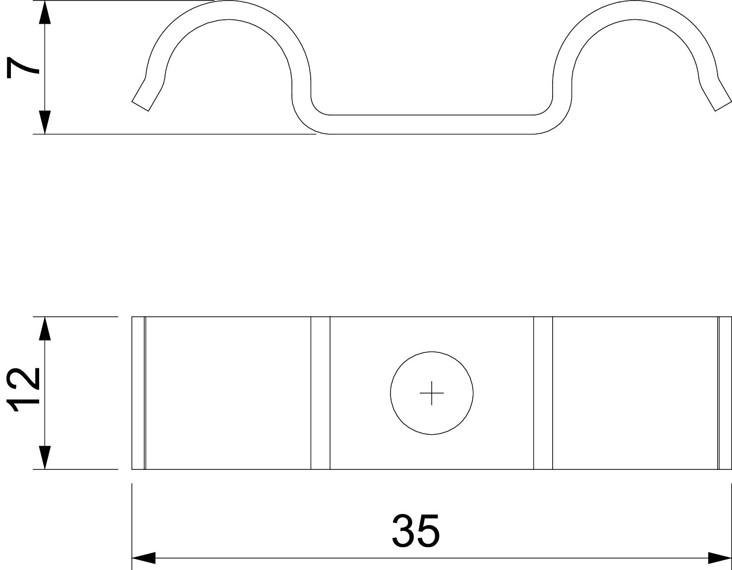 Clamping range D, min. 6 mm CO2 Footprint (GWP) Cradle-to-Gate 0,0087 kg CO2e / 1 Piece Dimension 6mm Dimension A 35 mm Dimension b 12 mm Dimension H 7 mm Distance to the wall no Fastening type Screw hole For diameter 6 Halogen-free yes Height 7 mm Hole size 6,5 mm Length 35 mm Material Steel Material thickness 1,5 mm Nominal diameter 6 mm Number of cables/pipes 2 Plastic-covered no Suitable in fire protection area yes Surface Electrogalvanized UV-resistant yes Version for Single-lobe Width 12 mm - All types