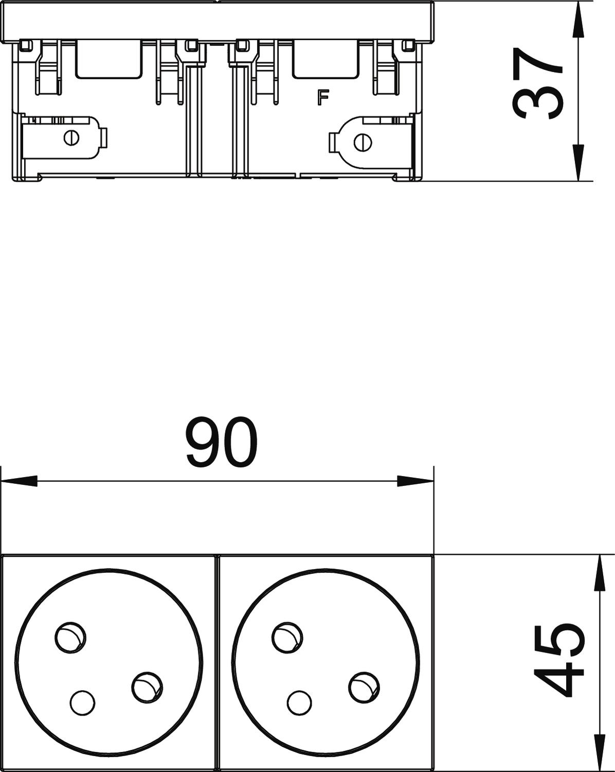 Approvals VDE Closable no CO2 Footprint (GWP) Cradle-to-Gate 0,1624 kg CO2e / 1 Piece Coding no Colour Black-grey; RAL 7021 Connection type Screwless terminal Cover Central plate Depth 37 mm Dimension 250V, 10/16A Ejection mechanism no Error current protection no Fastening type Lock For more difficult conditions (according to VDE) no Halogen-free yes Height 45 mm Hinged cover no increased touch protection yes Insulated installation no Labelling panel no Material Polycarbonate Mounting type Device installation duct Nominal current 16 A Nominal voltage 250 V Number of modules (for modular construction) 2 Number of poles 2 Number of units 2 Operating temperature, max. 40 °C Operating temperature, min. -5 °C Printed label/coding Without printing Protection rating Other Rotated central insert yes Socket angle 33° Socket version NF Special power supply Without special power supply Surface version Matt Surge protection no Transparent no Version for Double 33° Warning light no Width 90 mm With fine-wire fuse no With functional lighting no With on/off switch no With orientation lighting no - All types