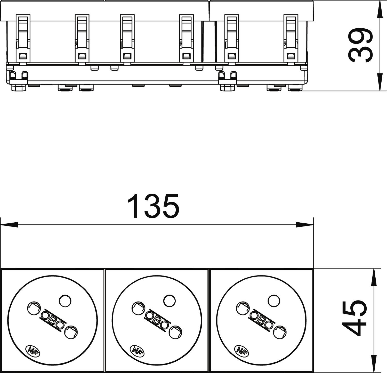 Approvals VDE Closable no CO2 Footprint (GWP) Cradle-to-Gate 0,4937 kg CO2e / 1 Piece Coding no Colour Black-grey; RAL 7021 Connection type Screwless terminal Cover Central plate Depth 39 mm Dimension 250V, 10/16A Ejection mechanism no Error current protection no Fastening type Lock For more difficult conditions (according to VDE) no Halogen-free yes Height 45 mm Hinged cover no increased touch protection yes Insulated installation no Labelling panel no Material Polycarbonate Mounting type Device installation duct Nominal current 16 A Nominal voltage 250 V Number of modules (for modular construction) 3 Number of poles 2 Number of units 3 Operating temperature, max. 40 °C Operating temperature, min. -5 °C Printed label/coding Without printing Protection rating Other Rotated central insert yes Socket angle 33° Socket version NF Special power supply Without special power supply Surface version Matt Surge protection no Transparent no Version for Triple 33° Warning light no Width 135 mm With fine-wire fuse no With functional lighting no With on/off switch no With orientation lighting no - All types