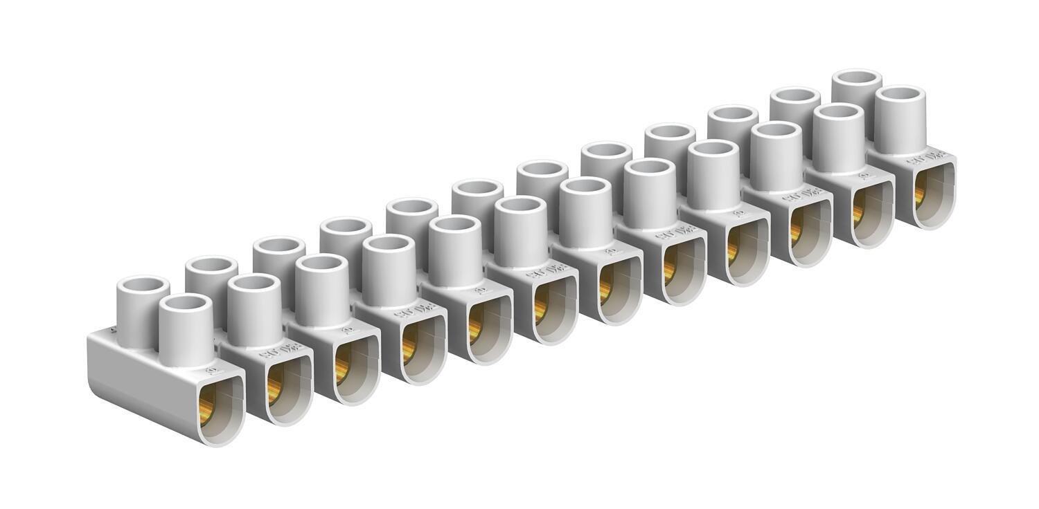 Ambient temperature 80 °C Closing plate required no Colour White Connectable conductor cross-section, fine-wire without wire-end ferrule, max. 4 mm² Connectable conductor cross-section, fine-wire without wire-end ferrule, min. 1 mm² Connectable conductor cross-section, multi-wire, max. 4 mm² Connectable conductor cross-section, multi-wire, min. 1 mm² Connectable conductor cross-section, single-wire, max. 4 mm² Connectable conductor cross-section, single-wire, min. 1 mm² Connection position Side Cross-section Max. attachment each side: 4 mm² single-wire or 2.5 mm² multi-wire/flexible mm² Dimension 4,0mm² Drill hole spacing, centre 8,1 mm Explosion-tested version no Height 13 mm Length 95 mm Material Polypropylene No. of terminals 12 Nominal cross-section, min. 4 mm² Nominal current 32 A Nominal voltage 450 V Number of screwless terminals per pole 2 Permitted temperature range, max. 80 °C Permitted temperature range, min. -5 °C Pole number 12 Suitable for flexible conductors yes Suitable for multi-wire conductors yes Suitable for solid conductors yes Transparent no Version of electrical connection 1 Screw connection Version of electrical connection 2 Screw connection Width 16,6 mm - All types