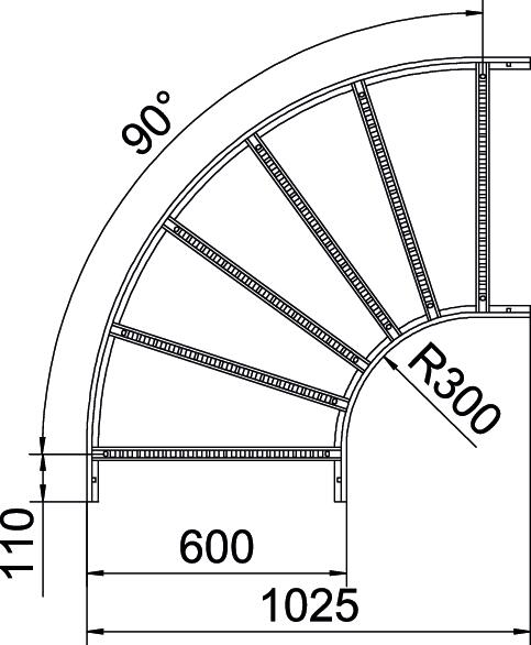 Bend (angle) 90° Change of direction Horizontal CO2 Footprint (GWP) Cradle-to-Gate 17,3354 kg CO2e / 1 Piece Colour zinc Connector version Without connectors Dimension 110x600 Dimension B 600 mm Dimension R 600 mm Height 110 mm Hinged no Maintain electrical functions no Material Steel Rail thickness 1,5 mm Rustproof steel, pickled no Side perforation no Side rail version Flat profile Surface Strip galvanized Version of the rungs Profile perforated Wide-span version no Width 600 mm - All types