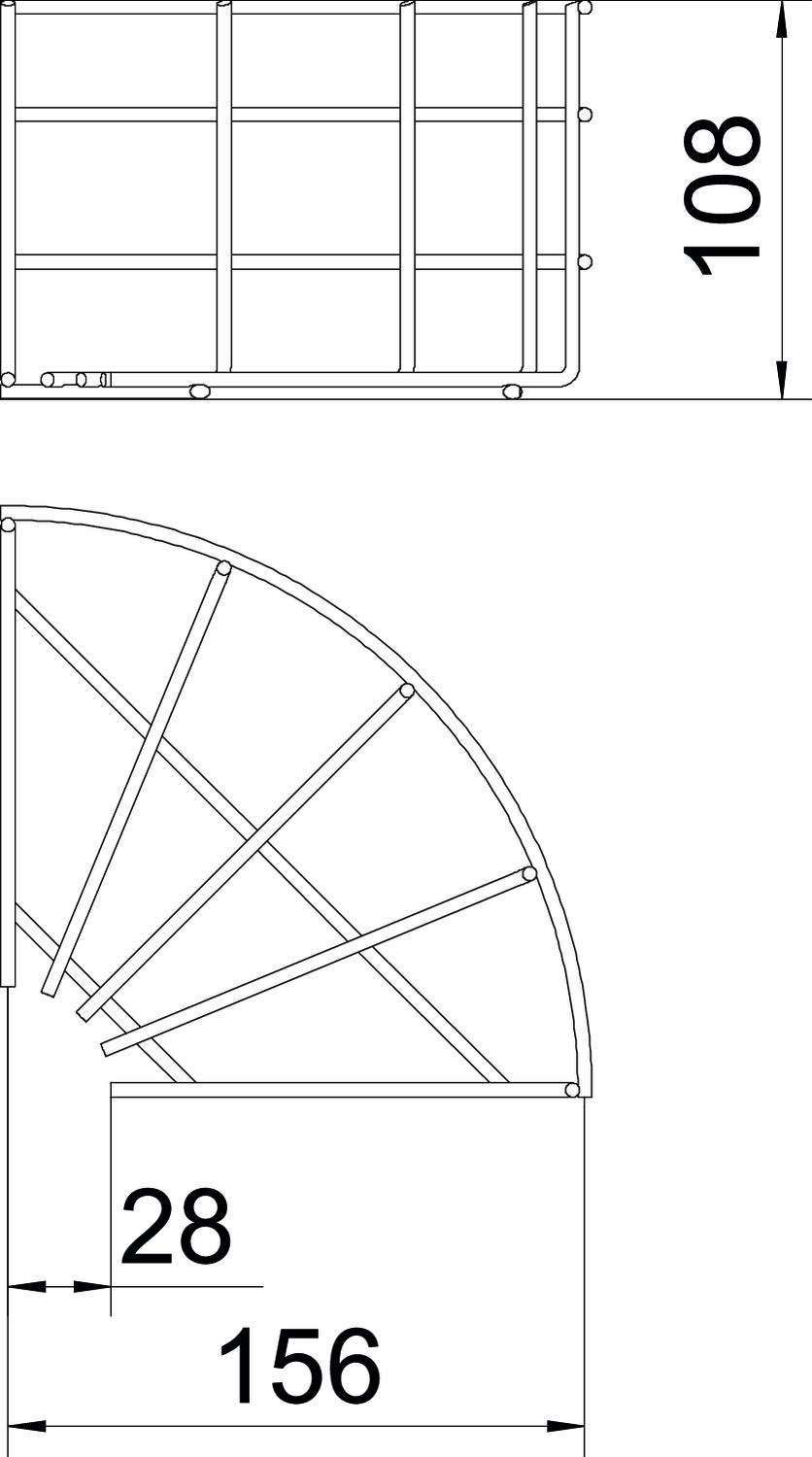 Product description90° bend, horizontal, for all mesh cable trays of 105 mm side height.