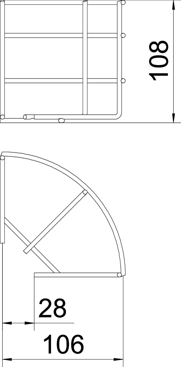 Product description90° bend, horizontal, for all mesh cable trays of 105 mm side height.