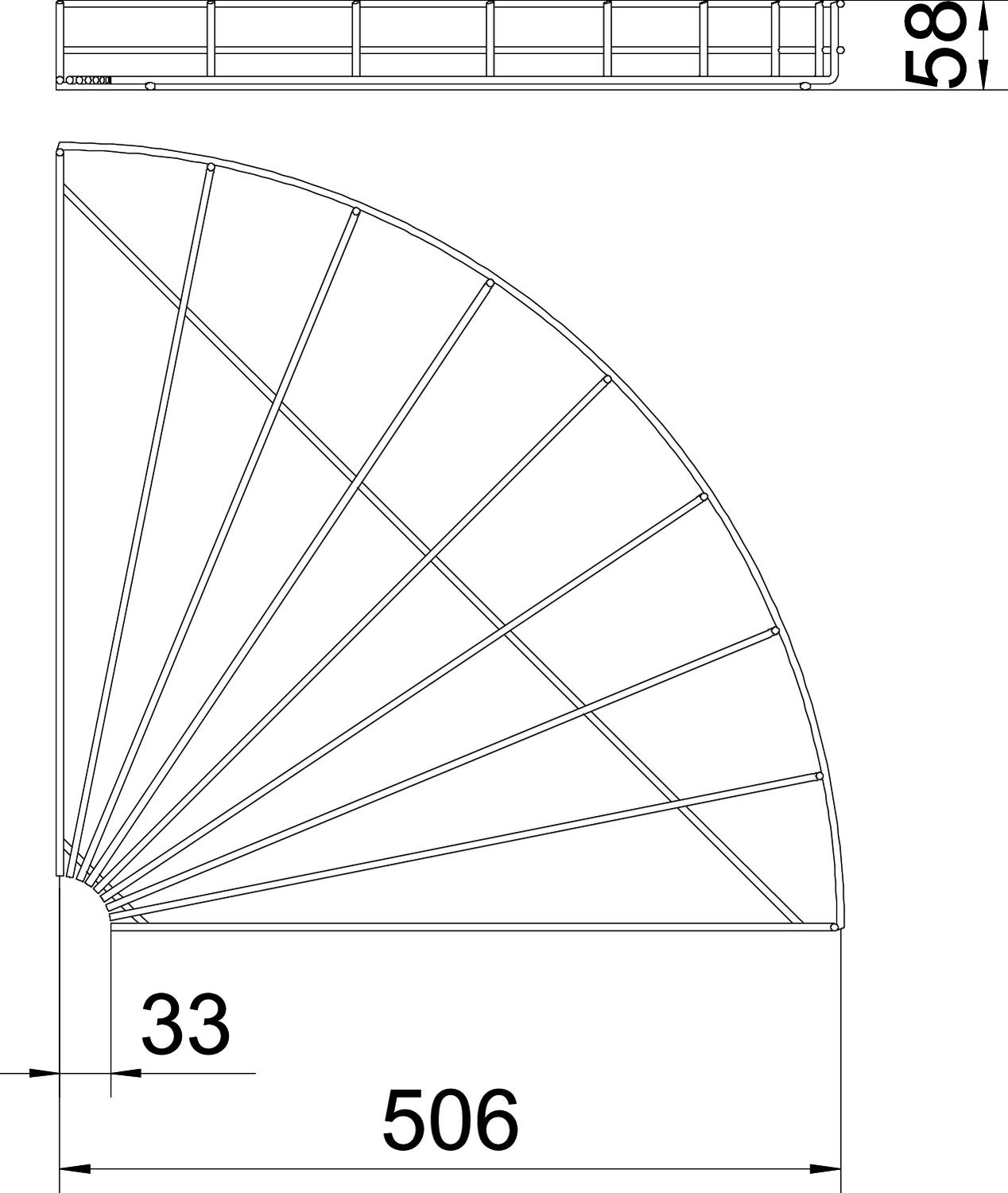 Product description90° bend, horizontal, for all mesh cable trays of 55 mm side height.