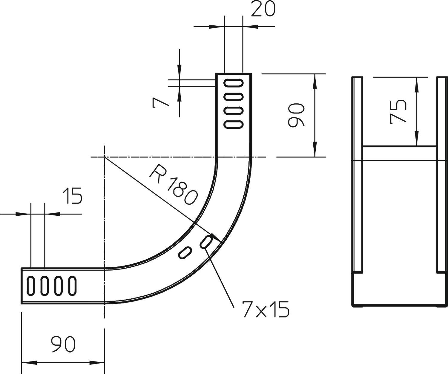 Bend (angle) 90° Change of direction Vertical rising CO2 Footprint (GWP) Cradle-to-Gate 2,7018 kg CO2e / 1 Piece Colour zinc Connector version Without connectors Dimension 35x200 Height 1 in Height 35 mm Maintain electrical functions no Material Steel Mounting perforation in base no NATO hole pattern no Plate thickness 1 mm Rustproof steel, pickled no Side perforation no Surface Strip galvanized Type of connector, cable support system Screwed Wide-span version no Width 200 mm Width 8 in - All types