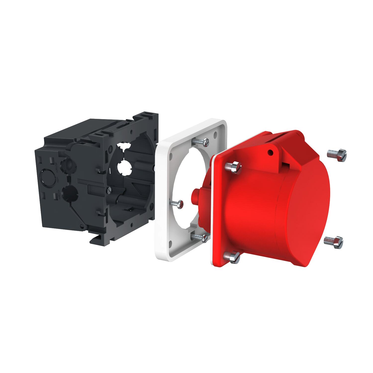 Product descriptionAccessory mounting box, complete, for the installation of a CEE connection device in device installation trunking with 80 mm cover, consisting of: