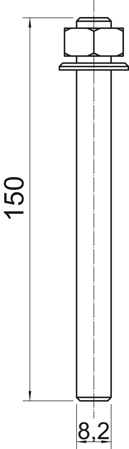 Colour zinc Depth marking yes Dimension 150x8,2 Dimension d 10 mm Dimension L 150 mm Length 150 mm Material Steel Resistance grade 5.8 Surface Electrogalvanized Thread M10 Thread metric 10 Thread type Metric WAF 17 With external thread yes - All types