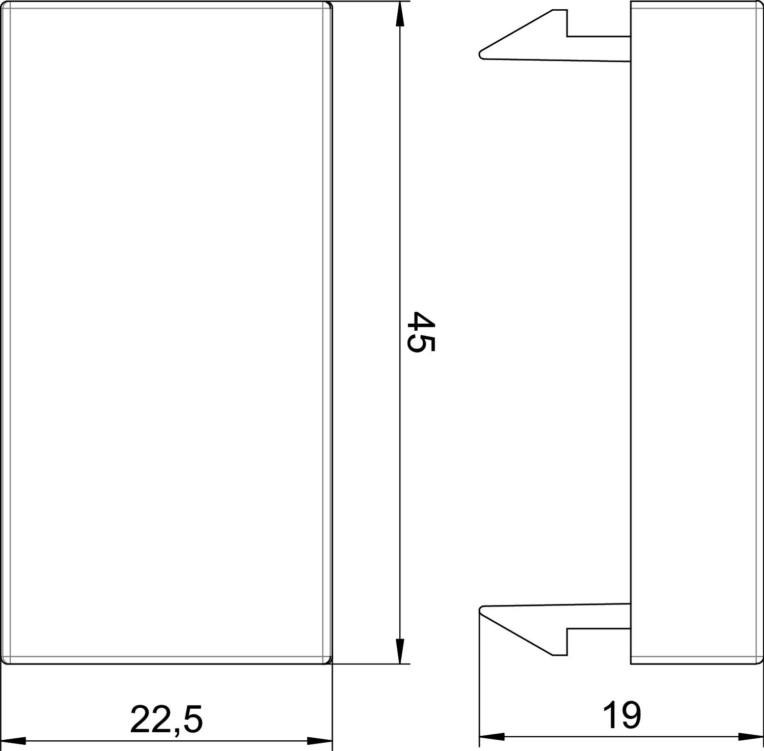 Antibacterial treatment no Changeable lense/symbol no CO2 Footprint (GWP) Cradle-to-Gate 0,0613 kg CO2e / 1 Piece Colour Aluminium painted Depth 9 mm Dimension 45x22,5mm Fastening type Clamp fastening Flush-mounted version yes Halogen-free no Height 45 mm Hinged cover no Mounting direction Horizontal Printed push-button label Without Protection rating Other Scannable symbol/barrier-free [Bitte prüfen, ob so gemeint. Ist das technische Scannen gemeint oder aber das Fühlen vom Symbol no Suitable for built-in installations no Suitable for device installation ducts yes Suitable for flush-mounted installations no Suitable for underfloor duct socket no Surface version Matt Text field/inscription field no Use of cover/operating element for installation switch programme Panel Version for cover/operating element for installation switch programme Blanking cover Width 22,5 mm - All types
