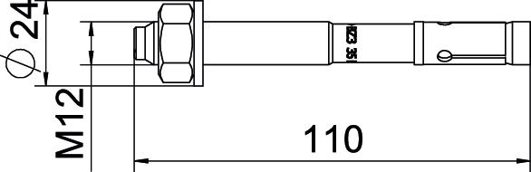 Anchor/nail/bolt version Spreading anchor Clamping range, max. 35 mm Colour stainless steel Dimension M12x110 Dimension L 110 mm Drill hole depth 83 mm Drill hole diameter, min. 12 mm ETA earthquake rating C1 and C2 Fire protection class to EN 13501-2 Other Length 110 mm Material Stainless steel Mounting type, anchor, tie Pre-mounting Surface Bright, treated Thread M12 Thread metric 12 Thread type Metric Thread, imperial 7/16" Tie fastening device Nut Tie screw system Hexagon head Version for For knocking in Version, tie External thread WAF 19 - All types