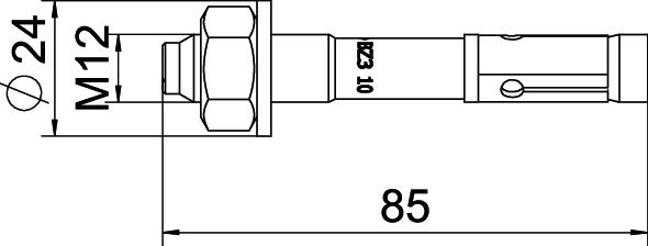 Anchor/nail/bolt version Spreading anchor Approvals available yes Clamping range, max. 10 mm Colour zinc Dimension M12x85 Dimension L 85 mm Drill hole depth 83 mm Drill hole diameter, min. 12 mm ETA earthquake rating C1 and C2 Fire protection class to EN 13501-2 Other Length 85 mm Material Steel Mounting type, anchor, tie Pre-mounting Surface Electrogalvanized Thread M12 Thread length 29 mm Thread metric 12 Thread type Metric Thread, imperial 7/16" Tie fastening device Nut Tie screw system Hexagon head Version for For knocking in Version, tie External thread WAF 19 - All types