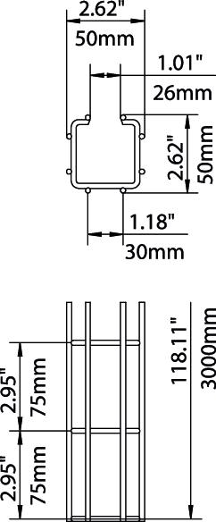 CO2 Footprint (GWP) Cradle-to-Gate 2,7968 kg CO2e / 1 Meter Colour zinc Connector version Without connectors Dimension 50x50x3000 Dimension A 26 mm Dimension B 67 mm Dimension H 67 mm Dimension l1 30 mm Height 50 mm Height 1,97 in Integrated partition Without Length 3000 mm Load test type according to IEC 61537 Type II Maintain electrical functions no Material Steel Profile shape C-shaped Rustproof steel, pickled no Support spacing 1.0 m 0,95 kN/m Support spacing 1.5 m 0,6 kN/m Support spacing 2.0 m 0,35 kN/m Surface Hot-dip galvanised Type of connector, cable support system Screwed Usable cross-section 13 cm² Usable cross-section 1300 mm² Wide-span version no Width 1,97 in Width 50 mm Wire diameter 4,5 mm - All types