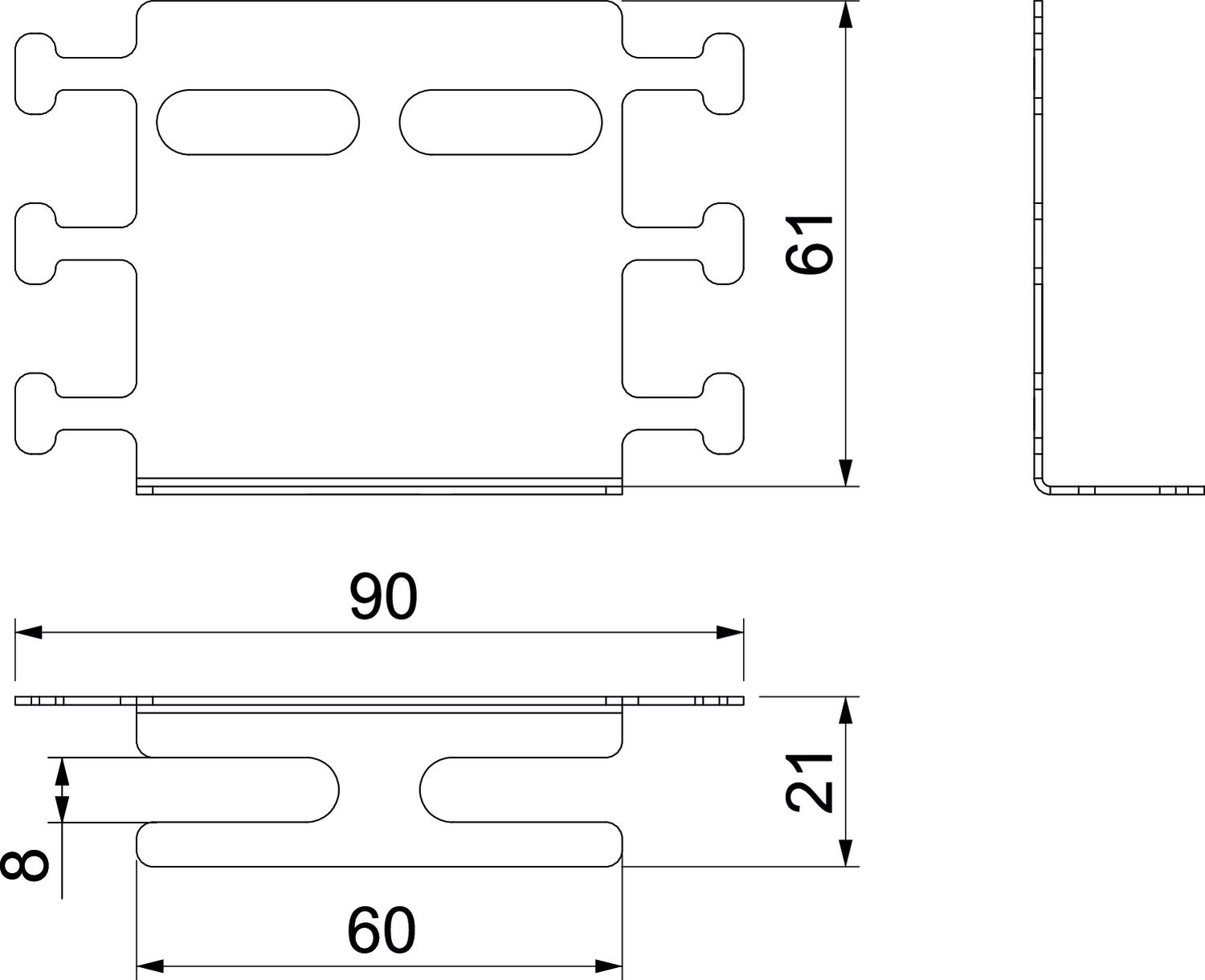 CO2 Footprint (GWP) Cradle-to-Gate 0,1984 kg CO2e / 1 Piece Colour zinc Dimension 60x20 Dimension B 21 mm Dimension b 8 mm Dimension H 61 mm Dimension L 90 mm Dimension l 60 mm Height 41 mm Length 60 mm Material Steel Surface Strip galvanized Type of accessory Miscellaneous Width 90 mm - All types
