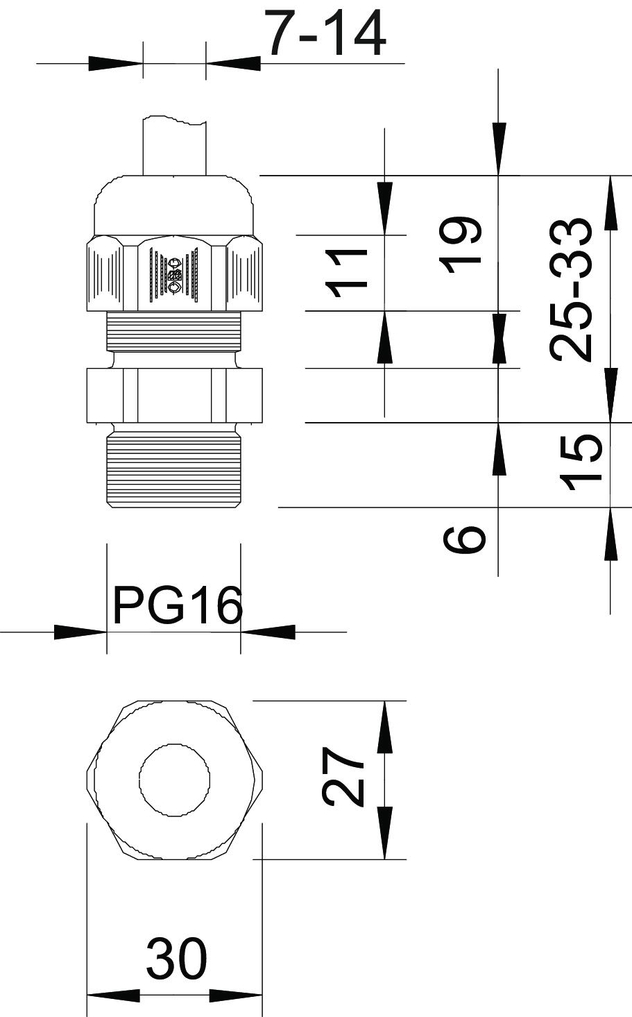 Bend protection no CO2 Footprint (GWP) Cradle-to-Gate 0,0764 kg CO2e / 1 Piece Colour Light grey; RAL 7035 Dimension PG16 Dimension E 30 mm Dimension L max. 33 mm Dimension L min. 25 mm Dimension L1 15 mm Dimension L2 6 mm Dimension L3 19 mm explosion-proof no Fibre-glass reinforced no Flat cable gland no For Ex zone Without For Ex zone dust Without For Ex zone gas Without Halogen-free yes Hexagonal corner dimension 30 mm Impact-resistant no Material Polyamide Nominal thread size 16 Permitted temperature range, max. 65 °C Permitted temperature range, min. -20 °C Protection rating IP68 Sealing area D, max. 14 mm Sealing area D, min. 7 mm Sealing insert, multiple no Splittable gland no Strain relief option yes Thread Pg 16 Thread increase 1,5 mm Thread length 15 mm Thread type PG Type of seal Sealing ring Unstable torque 3,67 Nm Version for Straight WAF 27 With locknut no - All types