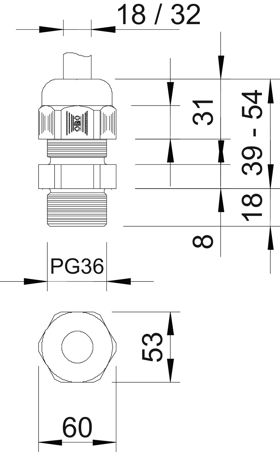 Bend protection no CO2 Footprint (GWP) Cradle-to-Gate 0,3184 kg CO2e / 1 Piece Colour Silver grey; RAL 7001 Dimension PG36 Dimension E 60 mm Dimension L max. 54 mm Dimension L min. 39 mm Dimension L1 18 mm Dimension L2 8 mm Dimension L3 31 mm explosion-proof no Fibre-glass reinforced no Flat cable gland no For Ex zone Without For Ex zone dust Without For Ex zone gas Without Halogen-free yes Hexagonal corner dimension 60 mm Impact-resistant no Material Polyamide Nominal thread size 36 Permitted temperature range, max. 65 °C Permitted temperature range, min. -20 °C Protection rating IP68 Sealing area D, max. 32 mm Sealing area D, min. 18 mm Sealing insert, multiple no Splittable gland no Strain relief option yes Thread Pg 36 Thread increase 1,5 mm Thread length 18 mm Thread type PG Type of seal Sealing ring Unstable torque 5 Nm Version for Straight WAF 53 With locknut no - All types