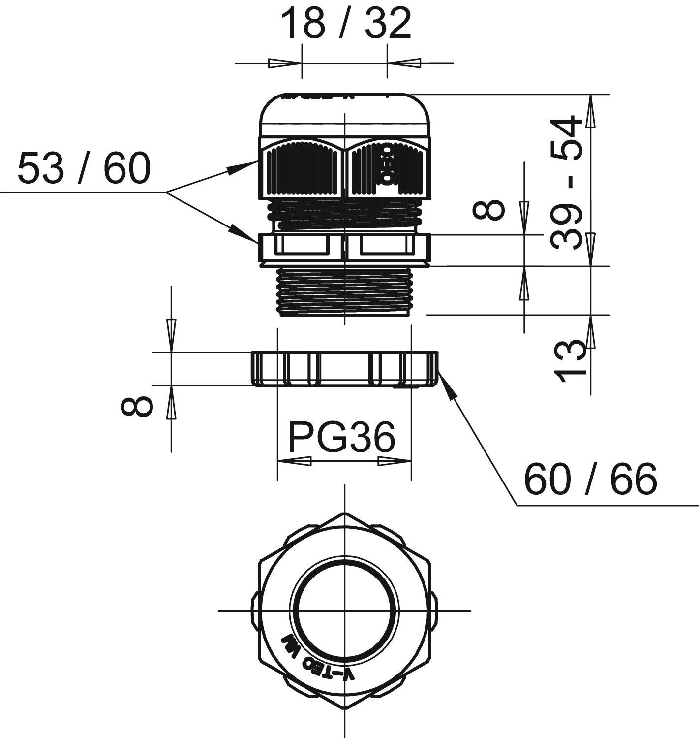 Bend protection no CO2 Footprint (GWP) Cradle-to-Gate 0,406 kg CO2e / 1 Piece Colour Light grey; RAL 7035 Dimension PG36 Dimension E1 (mm) 60 mm Dimension E2 66 mm Dimension L max. 54 mm Dimension L min. 39 mm Dimension L1 13 mm Dimension L2 8 mm Dimension L3 8 mm explosion-proof no Fibre-glass reinforced no Flat cable gland no For Ex zone Without For Ex zone dust Without For Ex zone gas Without Halogen-free yes Hexagonal corner dimension 60 mm Impact-resistant no Material Polyamide Nominal thread size 36 Permitted temperature range, max. 65 °C Permitted temperature range, min. -20 °C Protection rating IP68 Sealing area D, max. 32 mm Sealing area D, min. 18 mm Sealing insert, multiple no Splittable gland no Strain relief option yes Thread Pg 36 Thread increase 1,5 mm Thread length 13 mm Thread type PG Type of seal Sealing ring Version for Straight WAF 1 53 mm WAF 2 60 mm With locknut yes - All types