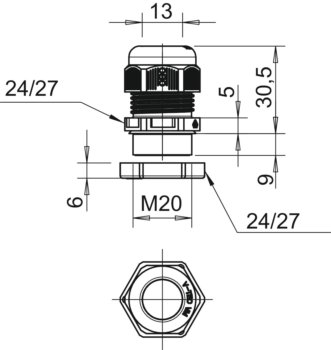 Product descriptionRobust cap nut cable gland with metric connecting thread to IEC 423, including pre-mounted locknut.