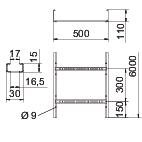 CO2 Footprint (GWP) Cradle-to-Gate 10,7229 kg CO2e / 1 Meter Colour zinc Dimension 110x500x6000 Dimension 110x500x6000 Dimension B 500 mm Fastening of rung Blind riveted Height 110 mm Length 6000 mm Maintain electrical functions no Material Steel Rail thickness 1,5 mm Rung distance 300 mm Rung slot dimension 16,50 Rustproof steel, pickled no Side perforation yes Side rail version Flat profile Support spacing 2.0 m 3,1 kN/m Support spacing 2.5 m 2 kN/m Support spacing 3.0 m 1,4 kN/m Support spacing 3.5 m 0,9 kN/m Support spacing 4.0 m 0,65 kN/m Support spacing 4.5 m 0,55 kN/m Support spacing 5.0 m 0,5 kN/m Support spacing 6.0 m 0,15 kN/m Surface Strip galvanized Usable cross-section 47500 mm² Usable cross-section 475 cm² Version of the rungs Profile perforated Wide-span version no Width 500 mm Technical data