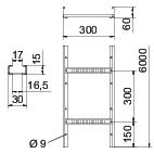 CO2 Footprint (GWP) Cradle-to-Gate 6,9409 kg CO2e / 1 Meter Colour zinc Dimension 60x300x6000 Dimension 60x300x6000 Dimension B 300 mm Fastening of rung Blind riveted Fire protection Maintenance of electrical function of standard support structure Height 60 mm Length 6000 mm Maintain electrical functions yes Material Steel Rail thickness 1,5 mm Rung distance 300 mm Rung slot dimension 16,50 Rustproof steel, pickled no Side perforation yes Side rail version Flat profile Support spacing 1.5 m 3,1 kN/m Support spacing 2.0 m 2,25 kN/m Support spacing 2.5 m 1,5 kN/m Support spacing 3.0 m 1,1 kN/m Support spacing 3.5 m 0,75 kN/m Support spacing 4.0 m 0,45 kN/m Support spacing 4.5 m 0,3 kN/m Support spacing 5.0 m 0,15 kN/m Surface Strip galvanized Usable cross-section 14800 mm² Usable cross-section 148 cm² Version of the rungs Profile perforated Wide-span version no Width 300 mm Technical data