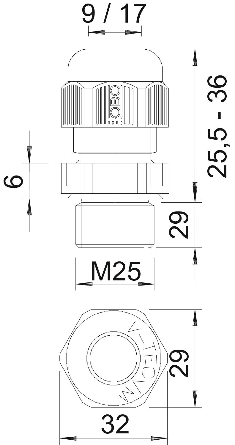 Bend protection no CO2 Footprint (GWP) Cradle-to-Gate 0,1213 kg CO2e / 1 Piece Dimension M25 Dimension E 30 mm Dimension L max. 29,5 mm Dimension L1 11 mm Dimension L2 4 mm Dimension L3 17 mm explosion-proof no Fibre-glass reinforced no Flat cable gland no For Ex zone Without Halogen-free no Impact-resistant no Material Brass Permitted temperature range, max. 100 °C Permitted temperature range, min. -20 °C Protection rating IP68 Sealing area D, max. 16 mm Sealing area D, min. 11 mm Sealing insert, multiple no Strain relief option yes Surface Nickel-plated Thread M25 x 1,5 Thread length 11 mm Thread type Metric Type of seal Sealing ring Version for Straight WAF 27 With locknut no - All types