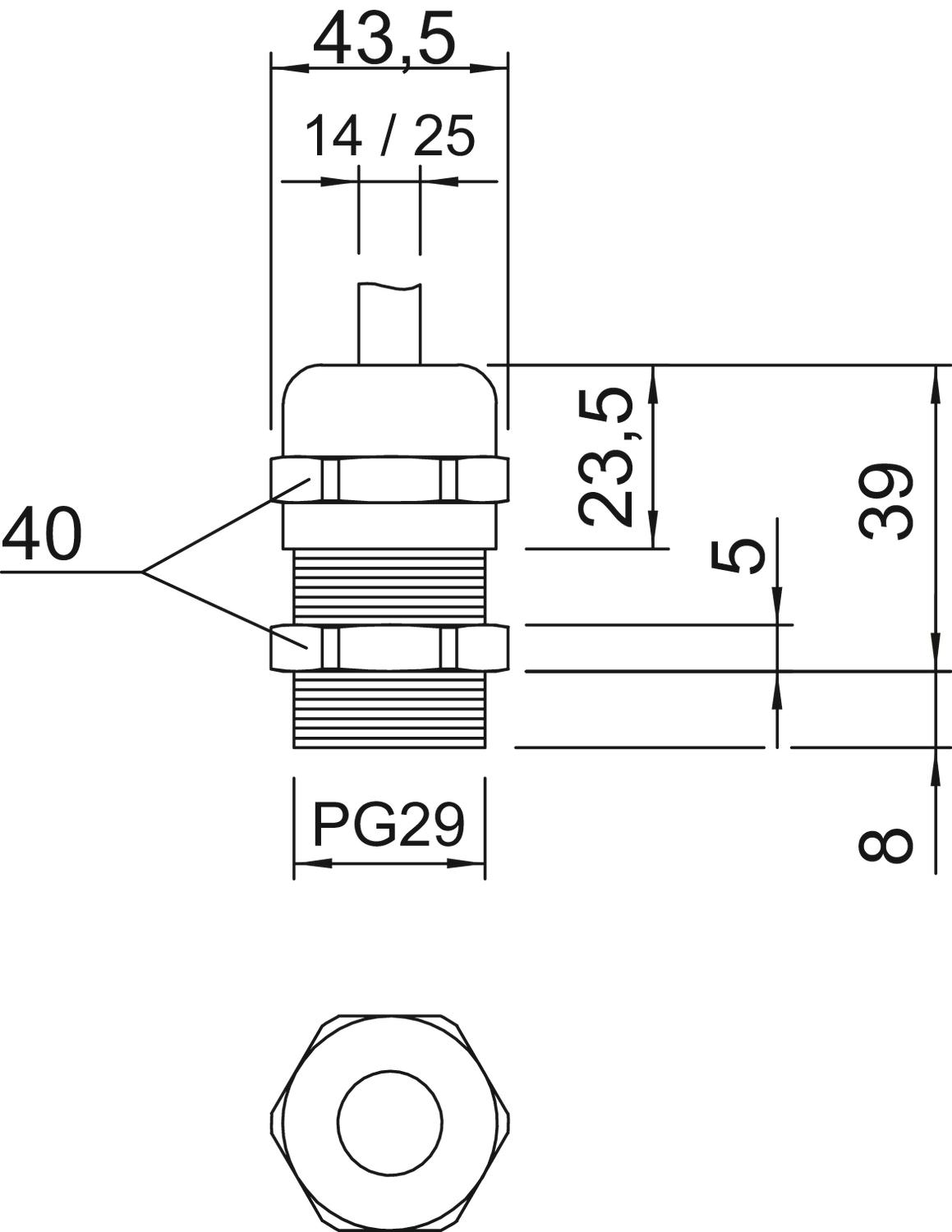 Bend protection no CO2 Footprint (GWP) Cradle-to-Gate 0,3759 kg CO2e / 1 Piece Dimension PG29 Dimension E 43,5 mm Dimension L max. 39 mm Dimension L1 8 mm Dimension L2 5 mm Dimension L3 23,5 mm explosion-proof no Fibre-glass reinforced no Flat cable gland no For Ex zone Without For Ex zone dust Without For Ex zone gas Without Halogen-free no Impact-resistant no Material Brass Nominal thread size 29 Permitted temperature range, max. 100 °C Permitted temperature range, min. -20 °C Protection rating IP68 Sealing area D, max. 25 mm Sealing area D, min. 14 mm Sealing insert, multiple no Splittable gland no Strain relief option yes Surface Nickel-plated Thread Pg 29 Thread length 8 mm Thread type PG Type of seal Sealing ring Version for Straight WAF 40 With locknut no - All types