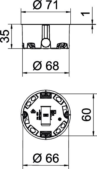 Airtight no Cable entries 3 x 1.5 mm² 4 Cable entries 3 x 2.5 mm² / 5 x 1.5 mm² 2 CO2 Footprint (GWP) Cradle-to-Gate 0,064 kg CO2e / 1 Piece Colour Orange Cover Without Cover fastening Screws , Device fixing Screws , Diameter 68 mm Dimension Ø68mm, H35mm Flame-resistant Acc. to VDE 0471/IEC 60695-2-11, test temperature 850°C Halogen-free yes Height 35 mm Impact-resistant no Material Polypropylene Milling hole diameter 68 mm No. of entries 6 Nominal cross-section, max. 2,5 mm² Nominal cross-section, min. 1,5 mm² Number of switch boxes 1 Protection rating IP30 Rated voltage 400 V Shape Round Suitable for plate thickness, max. 28 mm Suitable for plate thickness, min. 5 mm Support Connector Type of entry NYM cables and data cables Type of housing penetration Break-out opening With bolts yes - All types