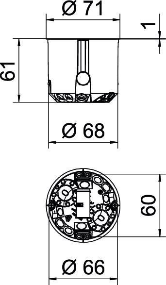 Airtight no Cable entries 3 x 1.5 mm² 4 Cable entries 3 x 2.5 mm² / 5 x 1.5 mm² 2 Cable entries 5 x 2.5 mm² / 7 x 1.5 mm² 2 Cable entries for low voltages 2 CO2 Footprint (GWP) Cradle-to-Gate 0,087 kg CO2e / 1 Piece Colour Orange Cover Without Cover fastening Screws , Device fixing Screws , Diameter 68 mm Dimension Ø68mm, H61mm Flame-resistant Acc. to VDE 0471/IEC 60695-2-11, test temperature 850°C for pipe diameter 20/25 mm Halogen-free yes Height 61 mm Impact-resistant no Material Polypropylene Milling hole diameter 68 mm No. of entries 10 Nominal cross-section, max. 2,5 mm² Nominal cross-section, min. 1,5 mm² Number of switch boxes 1 Protection rating IP30 Rated voltage 400 V Shape Round Suitable for plate thickness, max. 40 mm Suitable for plate thickness, min. 5 mm Support Connector Type of entry NYM cables, data cables and corrugated pipes Type of housing penetration Break-out opening With bolts yes - All types