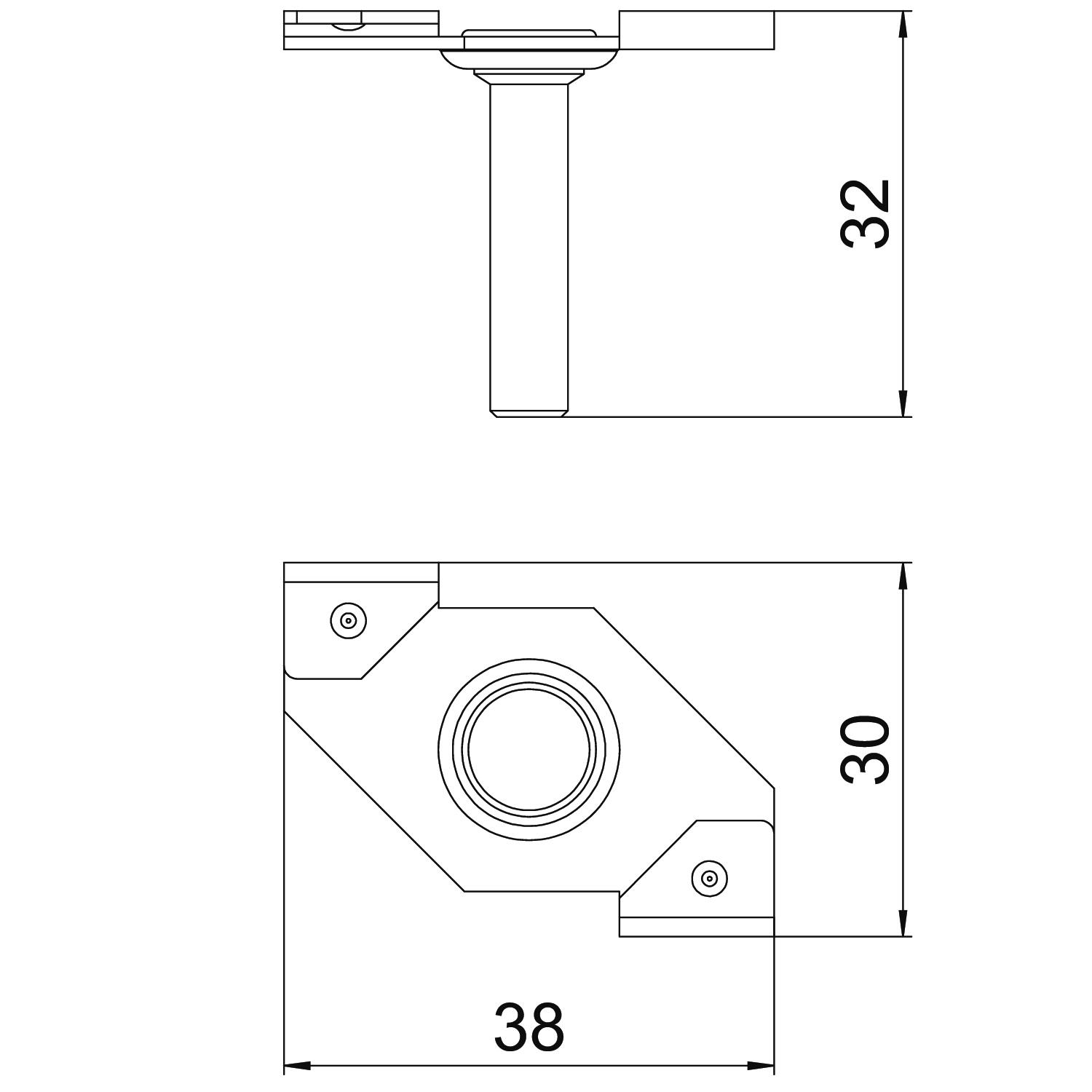 Breaking load 0,22 kN Colour zinc Connection type/component Thread Dimension M6x25mm Dimension H 32 mm Fastening type Clamp Flange thickness F max. 1,5 mm Flange thickness F min. 1 mm Height 32 mm Hinge, adjustable no Hinged no Length 38 mm Material Steel Surface Zinc slat Thread M6x25 Thread metric 6 Width 30 mm - All types
