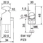 Clamping range D, max. 16 mm Clamping range D, min. 12 mm CO2 Footprint (GWP) Cradle-to-Gate 0,0896 kg CO2e / 1 Piece Dimension 12-16mm Dimension A 22,5 mm Dimension B 20 mm Dimension C 34 mm Dimension G (mm) M6 Dimension H 46 mm Dimension L 35 mm Dimension t 1,5 mm For pipe diameter, max. 16 mm For pipe diameter, min. 12 mm for rail with slot width (with interval), max. 17 mm for rail with slot width (with interval), min. 16 mm Halogen-free yes Height 46 mm Length 22,5 mm Length of external dimensions 34 mm Material Steel Material addition Steel Material of trough Plastic Material quality of trough Polypropylene Max. Tightening torque 3 Nm Mounting type Profile rail Number of cables/pipes 1 Plate thickness 1,5 mm Slot width 10 mm Surface Hot-dip galvanised Surface addition hot galvanised Thread M6 Width 20 mm With counter-trough no With plastic trough yes - All types