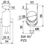 Clamping range D, max. 28 mm Clamping range D, min. 22 mm CO2 Footprint (GWP) Cradle-to-Gate 0,1319 kg CO2e / 1 Piece Dimension 22-28mm Dimension A 22,5 mm Dimension B 33 mm Dimension C 34 mm Dimension G (mm) M6 Dimension H 59 mm Dimension L 35 mm Dimension t 2 mm For pipe diameter, max. 28 mm For pipe diameter, min. 22 mm for rail with slot width (with interval), max. 17 mm for rail with slot width (with interval), min. 16 mm Halogen-free yes Height 59 mm Length 22,5 mm Length of external dimensions 34 mm Material Steel Material addition Steel Material of trough Plastic Material quality of trough Polypropylene Max. Tightening torque 3 Nm Mounting type Profile rail Number of cables/pipes 1 Plate thickness 2 mm Slot width 10 mm Surface Hot-dip galvanised Surface addition hot galvanised Thread M6 Width 33 mm With counter-trough no With plastic trough yes - All types