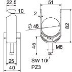 Clamping range D, max. 46 mm Clamping range D, min. 40 mm CO2 Footprint (GWP) Cradle-to-Gate 0,2119 kg CO2e / 1 Piece Dimension 40-46mm Dimension A 25 mm Dimension B 51 mm Dimension C 40 mm Dimension G (mm) M8 Dimension H 82 mm Dimension L 45 mm Dimension t 2 mm For pipe diameter, max. 46 mm For pipe diameter, min. 40 mm for rail with slot width (with interval), max. 17 mm for rail with slot width (with interval), min. 16 mm Halogen-free yes Height 82 mm Length 25 mm Length of external dimensions 40 mm Material Steel Material addition Steel Material of trough Plastic Material quality of trough Polypropylene Max. Tightening torque 5 Nm Mounting type Profile rail Number of cables/pipes 1 Plate thickness 2 mm Slot width 10 mm Surface Hot-dip galvanised Surface addition hot galvanised Thread M8 Width 51 mm With counter-trough no With plastic trough yes - All types
