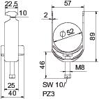 Clamping range D, max. 52 mm Clamping range D, min. 46 mm CO2 Footprint (GWP) Cradle-to-Gate 0,2287 kg CO2e / 1 Piece Dimension 46-52mm Dimension A 25 mm Dimension B 57 mm Dimension C 40 mm Dimension G (mm) M8 Dimension H 89 mm Dimension L 45 mm Dimension t 2 mm For pipe diameter, max. 52 mm For pipe diameter, min. 46 mm for rail with slot width (with interval), max. 17 mm for rail with slot width (with interval), min. 16 mm Halogen-free yes Height 89 mm Length 25 mm Length of external dimensions 40 mm Material Steel Material addition Steel Material of trough Plastic Material quality of trough Polypropylene Max. Tightening torque 5 Nm Mounting type Profile rail Number of cables/pipes 1 Plate thickness 2 mm Slot width 10 mm Surface Hot-dip galvanised Surface addition hot galvanised Thread M8 Width 57 mm With counter-trough no With plastic trough yes - All types