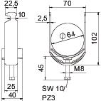 Clamping range D, max. 64 mm Clamping range D, min. 58 mm CO2 Footprint (GWP) Cradle-to-Gate 0,3103 kg CO2e / 1 Piece Dimension 58-64mm Dimension A 25 mm Dimension B 70 mm Dimension C 40 mm Dimension G (mm) M8 Dimension H 102 mm Dimension L 45 mm Dimension t 2,5 mm For pipe diameter, max. 64 mm For pipe diameter, min. 58 mm for rail with slot width (with interval), max. 17 mm for rail with slot width (with interval), min. 16 mm Halogen-free yes Height 102 mm Length 25 mm Length of external dimensions 40 mm Material Steel Material addition Steel Material of trough Plastic Material quality of trough Polypropylene Max. Tightening torque 5 Nm Mounting type Profile rail Number of cables/pipes 1 Plate thickness 2,5 mm Slot width 10 mm Surface Hot-dip galvanised Surface addition hot galvanised Thread M8 Width 70 mm With counter-trough no With plastic trough yes - All types