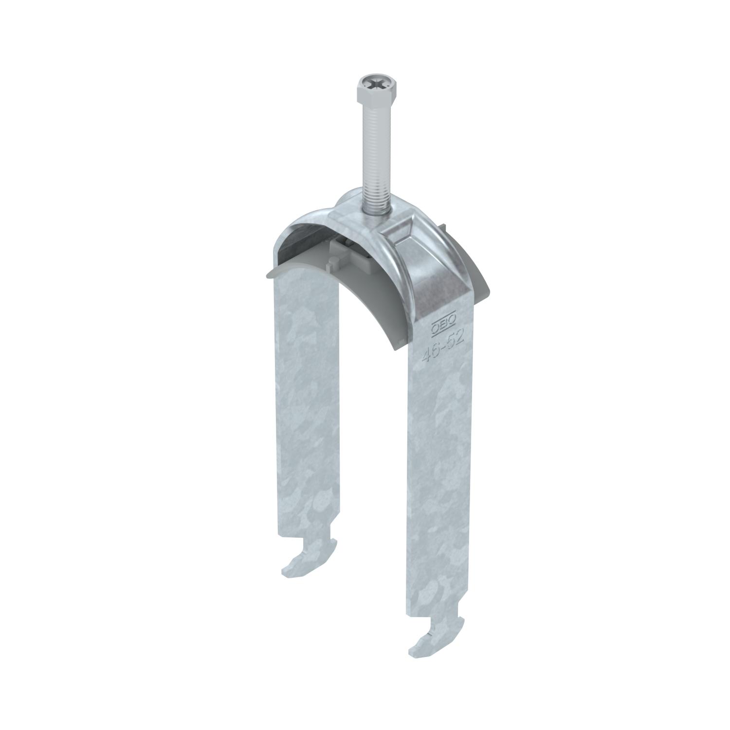 Clamping range D, max. 52 mm Clamping range D, min. 46 mm CO2 Footprint (GWP) Cradle-to-Gate 0,4067 kg CO2e / 1 Piece Dimension 46-52mm Dimension A 25 mm Dimension B 57 mm Dimension C 40 mm Dimension G (mm) M8 Dimension H 146 mm Dimension L 58 mm Dimension t 2 mm For pipe diameter, max. 52 mm For pipe diameter, min. 46 mm for rail with slot width (with interval), max. 17 mm for rail with slot width (with interval), min. 16 mm Halogen-free yes Height 146 mm Length 25 mm Length of external dimensions 40 mm Material Steel Material addition Steel Material of trough Plastic Material quality of trough Polypropylene Max. Tightening torque 5 Nm Mounting type Profile rail Number of cables/pipes 2 Plate thickness 2 mm Slot width 10 mm Surface Hot-dip galvanised Surface addition hot galvanised Thread M8 Width 57 mm With counter-trough no With plastic trough yes - All types