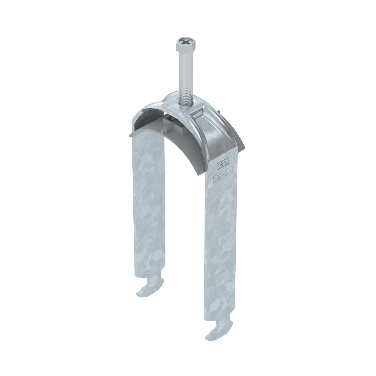 Clamping range D, max. 58 mm Clamping range D, min. 52 mm CO2 Footprint (GWP) Cradle-to-Gate 0,4381 kg CO2e / 1 Piece Dimension 52-58mm Dimension A 25 mm Dimension B 64 mm Dimension C 40 mm Dimension G (mm) M8 Dimension H 159 mm Dimension L 58 mm Dimension t 2,5 mm For pipe diameter, max. 58 mm For pipe diameter, min. 52 mm for rail with slot width (with interval), max. 17 mm for rail with slot width (with interval), min. 16 mm Halogen-free yes Height 159 mm Length 25 mm Length of external dimensions 40 mm Material Steel Material addition Steel Material of trough Plastic Material quality of trough Polypropylene Max. Tightening torque 5 Nm Mounting type Profile rail Number of cables/pipes 2 Plate thickness 2,5 mm Slot width 10 mm Surface Hot-dip galvanised Surface addition hot galvanised Thread M8 Width 64 mm With counter-trough no With plastic trough yes - All types