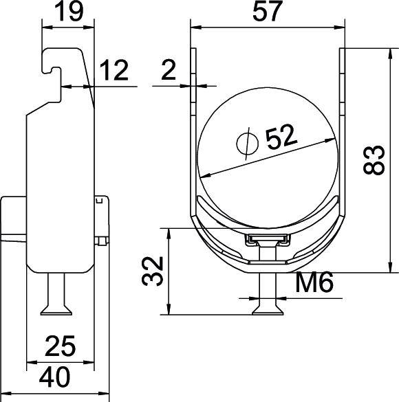 Clamping range D, max. 52 mm Clamping range D, min. 46 mm CO2 Footprint (GWP) Cradle-to-Gate 0,5683 kg CO2e / 1 Piece Dimension 46-52mm Dimension A 25 mm Dimension B 57 mm Dimension C 40 mm Dimension G (mm) M8 Dimension H 83 mm Dimension L 32 mm Dimension t 2 mm For pipe diameter, max. 52 mm For pipe diameter, min. 46 mm for rail with slot width (with interval), max. 22 mm for rail with slot width (with interval), min. 18 mm Halogen-free yes Height 83 mm Length 25 mm Length of external dimensions 40 mm Material Stainless steel 1.4301 Material addition Rustproof steel Material of trough Plastic Material quality of trough Polypropylene Max. Tightening torque 5 Nm Mounting type Profile rail Number of cables/pipes 1 Plate thickness 2 mm Slot width 10 mm Surface Bright, treated Surface addition Untreated Thread M8 Width 57 mm With counter-trough no With metal trough no With plastic trough yes - All types