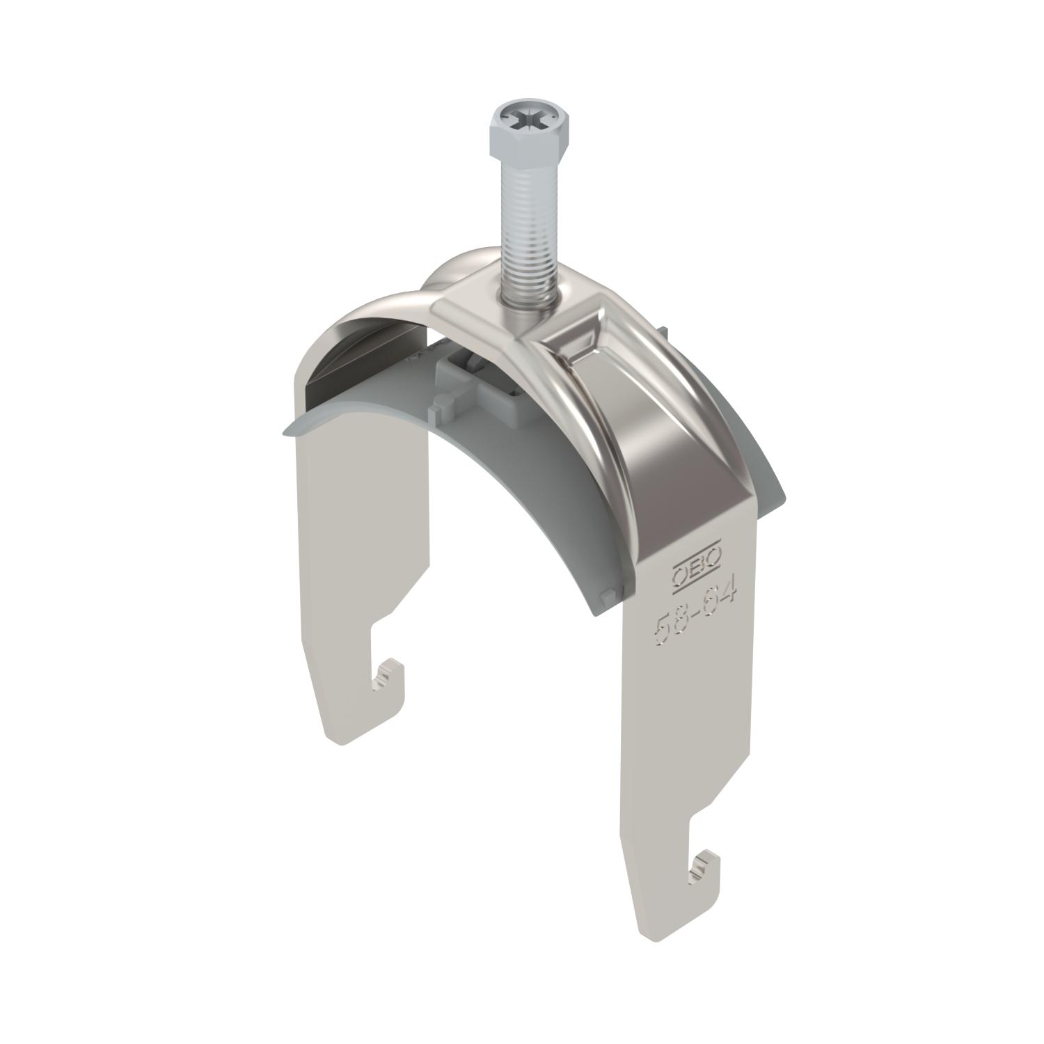 Clamping range D, max. 64 mm Clamping range D, min. 58 mm CO2 Footprint (GWP) Cradle-to-Gate 0,6897 kg CO2e / 1 Piece Dimension 58-64mm Dimension A 25 mm Dimension B 70 mm Dimension C 40 mm Dimension G (mm) M8 Dimension H 95 mm Dimension L 45 mm Dimension t 2,5 mm For pipe diameter, max. 64 mm For pipe diameter, min. 58 mm for rail with slot width (with interval), max. 22 mm for rail with slot width (with interval), min. 18 mm Halogen-free yes Height 95 mm Length 25 mm Length of external dimensions 40 mm Material Stainless steel 1.4301 Material addition Rustproof steel Material of trough Plastic Material quality of trough Polypropylene Max. Tightening torque 5 Nm Mounting type Profile rail Number of cables/pipes 1 Plate thickness 2,5 mm Slot width 10 mm Surface Bright, treated Surface addition Untreated Thread M8 Width 70 mm With counter-trough no With metal trough no With plastic trough yes - All types