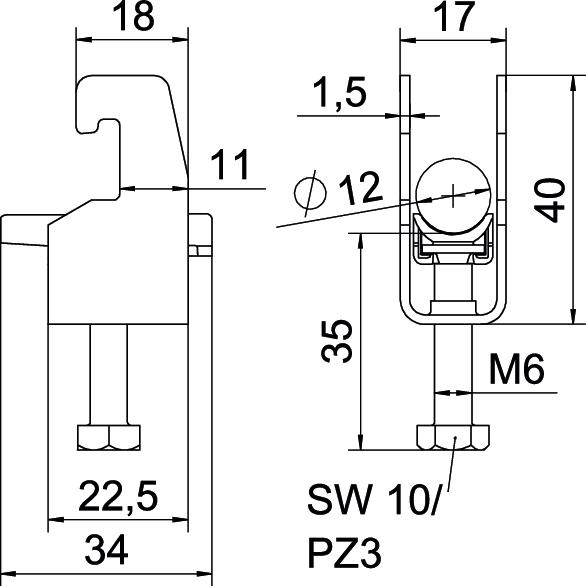 Clamping range D, max. 12 mm Clamping range D, min. 8 mm CO2 Footprint (GWP) Cradle-to-Gate 0,2103 kg CO2e / 1 Piece Dimension 08-12mm Dimension A 22,5 mm Dimension B 17 mm Dimension C 34 mm Dimension G (mm) M6 Dimension H 40 mm Dimension L 35 mm Dimension t 1,5 mm For pipe diameter, max. 12 mm For pipe diameter, min. 8 mm for rail with slot width (with interval), max. 22 mm for rail with slot width (with interval), min. 18 mm Halogen-free yes Height 40 mm Length 22,5 mm Length of external dimensions 34 mm Material Stainless steel 1.4301 Material addition Rustproof steel Material of trough Plastic Material quality of trough Polypropylene Max. Tightening torque 3 Nm Mounting type Profile rail Number of cables/pipes 1 Plate thickness 1,5 mm Slot width 10 mm Surface Bright, treated Surface addition Untreated Thread M6 Width 17 mm With counter-trough no With metal trough no With plastic trough yes - All types