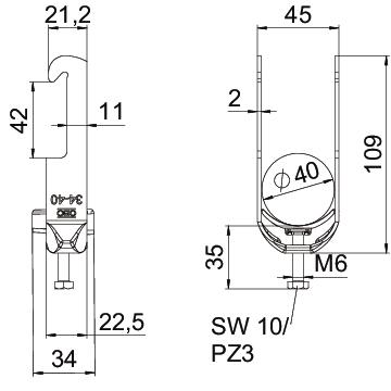 Clamping range D, max. 40 mm Clamping range D, min. 34 mm CO2 Footprint (GWP) Cradle-to-Gate 0,2131 kg CO2e / 1 Piece Dimension 34-40mm Dimension A 22,5 mm Dimension B 45 mm Dimension C 34 mm Dimension G (mm) M6 Dimension H 109 mm Dimension L 35 mm Dimension t 2 mm For pipe diameter, max. 40 mm For pipe diameter, min. 34 mm Halogen-free yes Height 109 mm Length 22,5 mm Length of external dimensions 34 mm Material Steel Material addition Steel Material of trough Plastic Material quality of trough Polypropylene Max. Tightening torque 3 Nm Mounting type Angle profile Number of cables/pipes 1 Plate thickness 2 mm Slot width 10 mm Surface Hot-dip galvanised Surface addition hot galvanised Thread M6 Width 45 mm With counter-trough no With plastic trough yes - All types