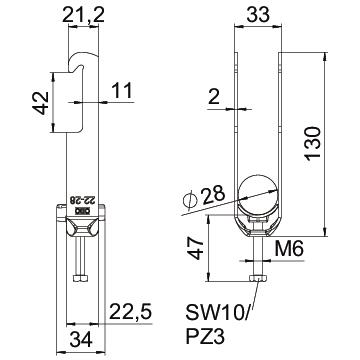 Clamping range D, max. 28 mm Clamping range D, min. 22 mm CO2 Footprint (GWP) Cradle-to-Gate 0,2901 kg CO2e / 1 Piece Dimension 22-28mm Dimension A 22,5 mm Dimension B 33 mm Dimension C 34 mm Dimension G (mm) M6 Dimension H 130 mm Dimension L 47 mm Dimension t 2 mm For pipe diameter, max. 28 mm For pipe diameter, min. 22 mm Halogen-free yes Height 130 mm Length 22,5 mm Length of external dimensions 34 mm Material Steel Material addition Steel Material of trough Plastic Material quality of trough Polypropylene Max. Tightening torque 3 Nm Mounting type Angle profile Number of cables/pipes 2 Plate thickness 2 mm Slot width 10 mm Surface Hot-dip galvanised Surface addition hot galvanised Thread M6 Width 33 mm With counter-trough no With plastic trough yes - All types