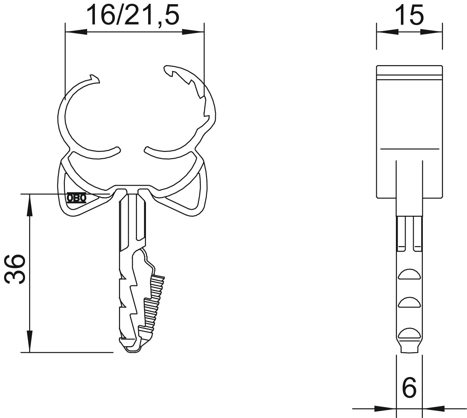 Breaking load for concrete B25 500 N Clamping range D, max. 21,5 mm Clamping range D, min. 16 mm CO2 Footprint (GWP) Cradle-to-Gate 0,02 kg CO2e / 1 Piece Colour Light grey; RAL 7035 Dimension 16-21,5mm Drill hole depth 40 mm Drill hole diameter, min. 6 mm Fastening type Plug fastening Halogen-free yes Material Polyamide Version for Closed - All types