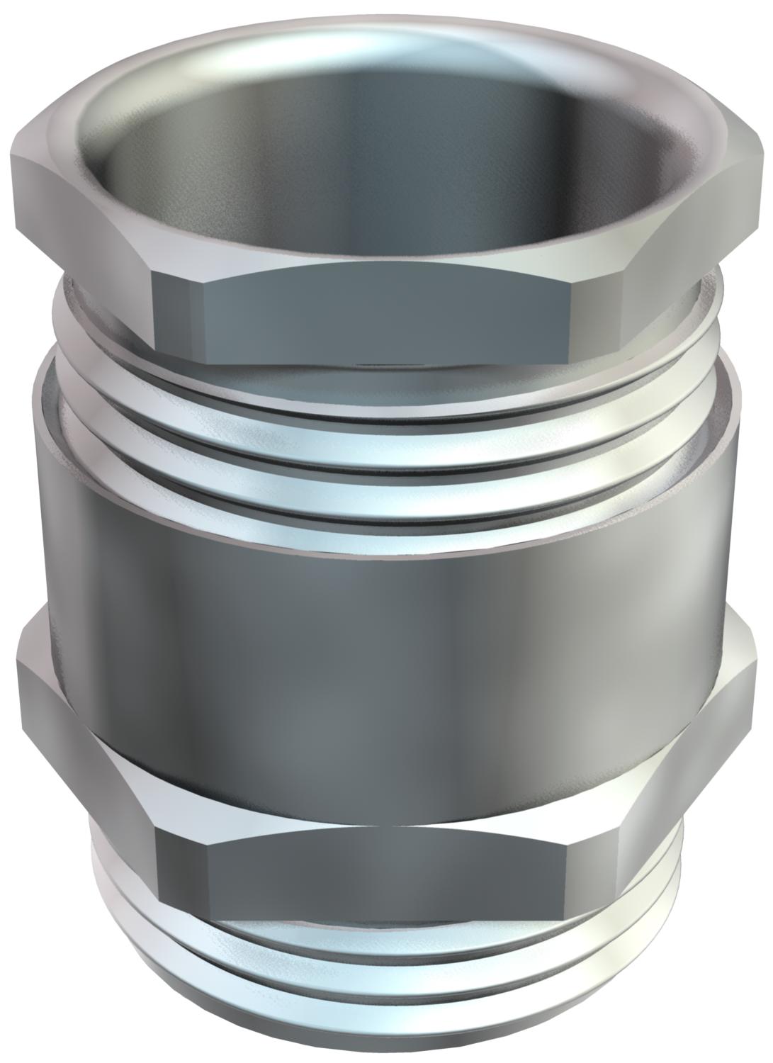Product descriptionCable gland with hexagonal intermediate connector, shape C4, to DIN 46320 with metric connection thread to DIN EN 60423 and ISO 68. Pressure rings made of electrogalvanised and transparently passivated steel.