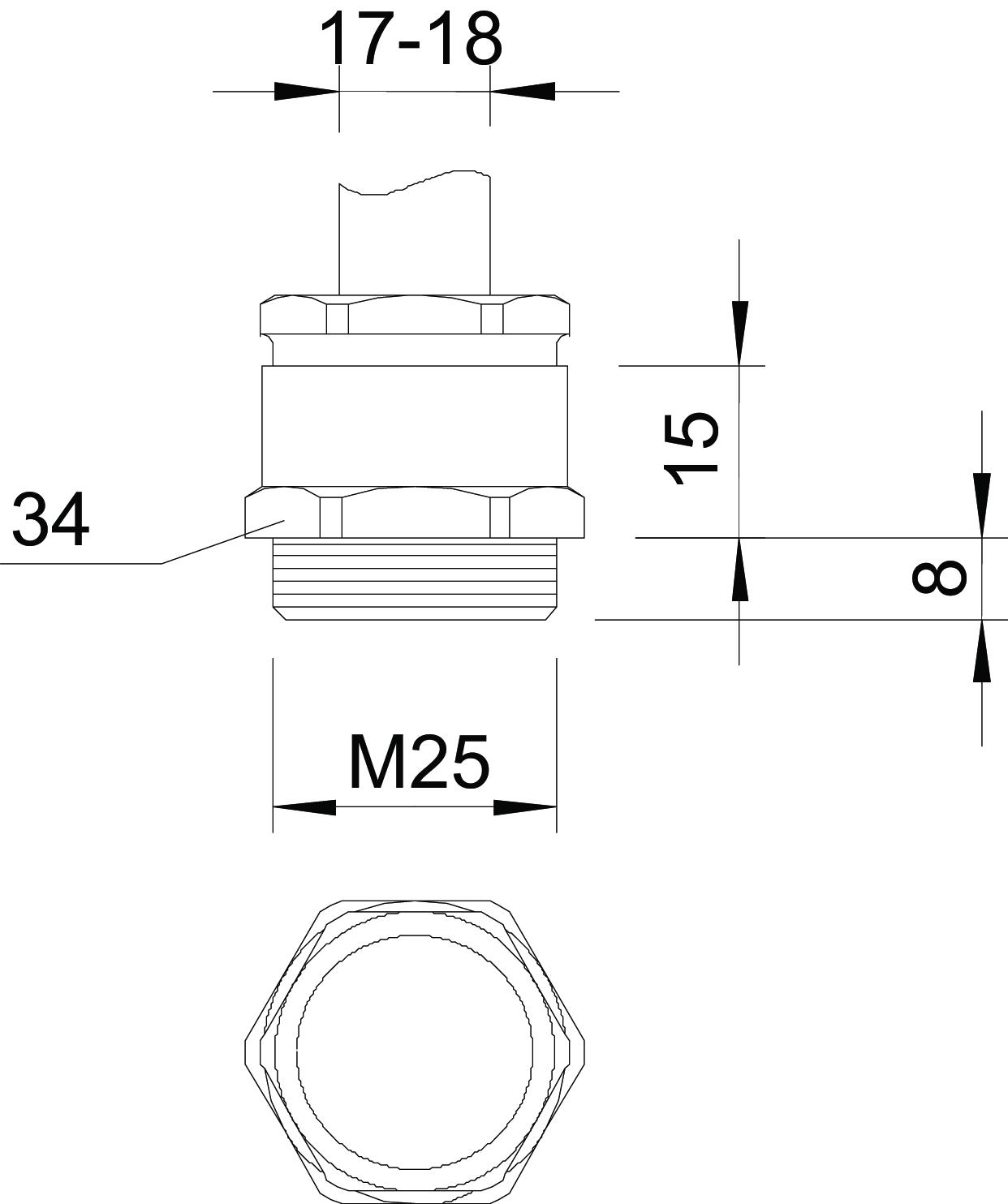 Bend protection no CO2 Footprint (GWP) Cradle-to-Gate 0,0979 kg CO2e / 1 Piece Dimension M25 Dimension E 35,5 mm Dimension L1 8 mm Dimension L2 15 mm explosion-proof no Fibre-glass reinforced no Flat cable gland no For Ex zone Without Halogen-free no Impact-resistant no Material Brass Protection rating IP65 Sealing area D, max. 19 mm Sealing area D, min. 17 mm Sealing insert, multiple no Strain relief option no Surface Nickel-plated Thread M25 x 1,5 Thread length 8 mm Thread type Metric Type of seal Sealing ring WAF 1 34 mm WAF 2 28 mm With locknut no - All types