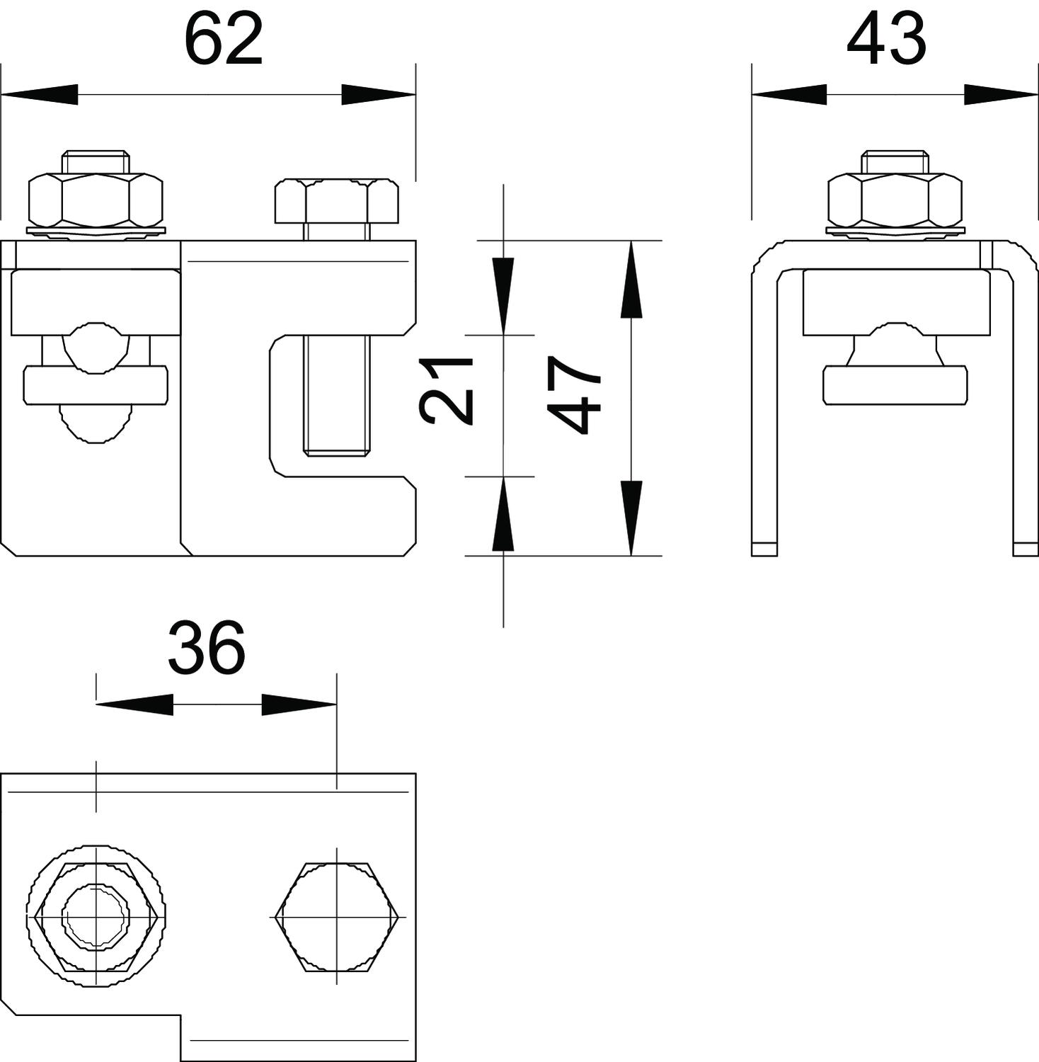 Clamping range, max. 20 mm Clamping range, min. 4 mm CO2 Footprint (GWP) Cradle-to-Gate 1,0279 kg CO2e / 1 Piece Dimension 20mm Fit Rd 8-10 mm Intermediate plate no Lightning current carrying capacity N/50 kA Material Steel Suitable for connection Miscellaneous Surface Hot-dip galvanised Type of connector Construction clamp Type of fastening screw Hexagonal bolt - All types