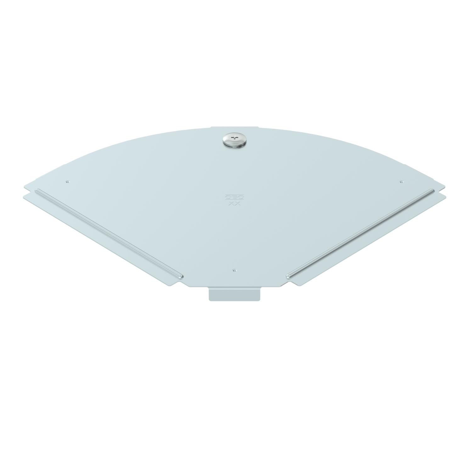 Product descriptionCover for 90° bend fitting for lockable and screw-on cable trays in indoor areas, to protect cables against damage and soiling. Fastening with pre-mounted sash lock and through attachment of the section cover. Suitable for all side heights.