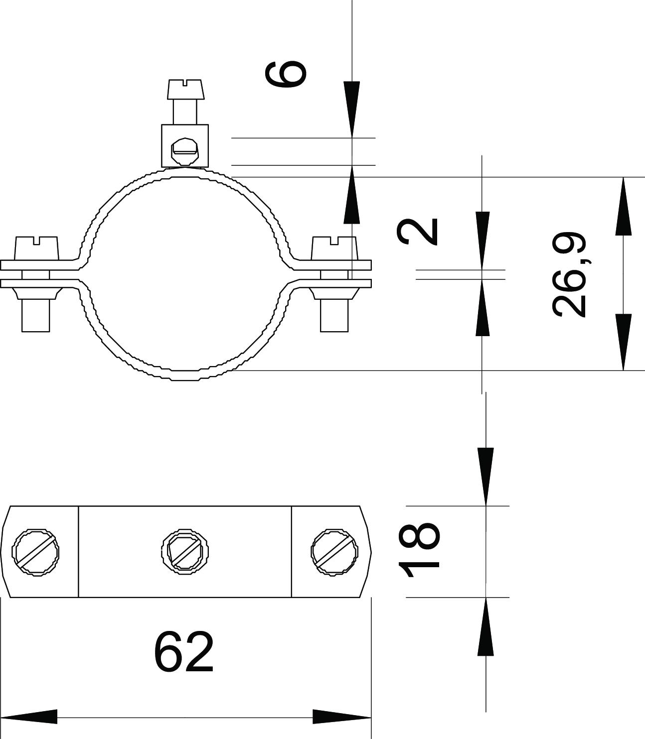 Clamping range D 3/4 Clamping range D, max. 26,9 mm Clamping range D, min. 24,9 mm CO2 Footprint (GWP) Cradle-to-Gate 0,1181 kg CO2e / 1 Piece Cross-section of cable to be connected, max. 16 mm² Dimension 3/4" Dimension A 62 mm Dimension b 18 mm Dimension D 26,9 mm Dimension X 2 mm Material Steel Number of conductors 1 Surface Electrogalvanized - All types