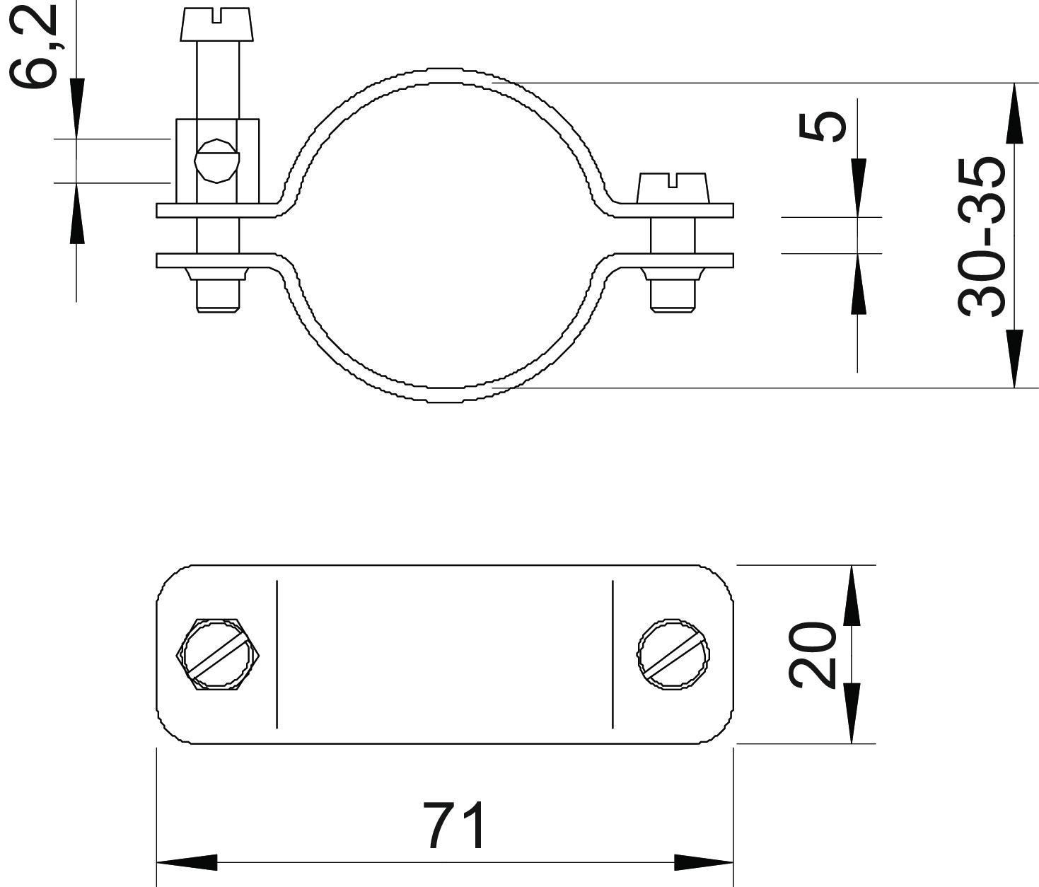 Clamping range D 1 Clamping range D, max. 35 mm Clamping range D, min. 30 mm CO2 Footprint (GWP) Cradle-to-Gate 0,2095 kg CO2e / 1 Piece Cross-section of cable to be connected, max. 25 mm² Dimension 30-35mm Dimension A 71 mm Dimension b 20 mm Dimension X 5 mm Material Copper Number of conductors 1 Surface Nickel-plated - All types